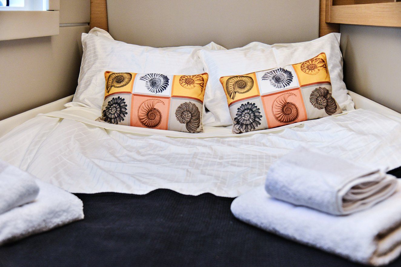 Welcome to your new home. Brand new, fully equipped kitchen and 4 double-bed cabins with their own bathroom.